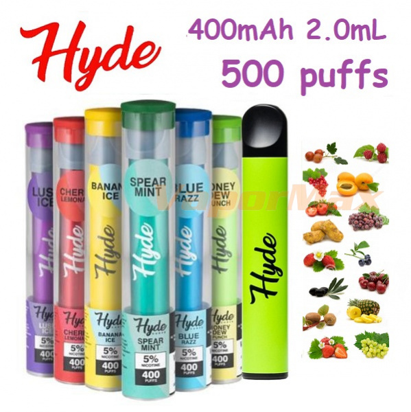 Одноразовая электронная сигарета Hyde Curve имеет ёмкость аккумулятора в 400mAh и вмещает 2,0 мл жидкости на солевом никотине и позволяет совершить до 500 затяжек.