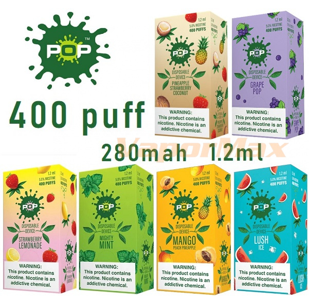 Одноразовая электронная сигарета POP имеет ёмкость аккумулятора в 280mAh, вмещает 1,2 мл жидкости на солевом никотине и позволяет совершить до 400 затяжек.